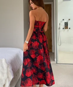 GIRL IN MIND DANNI STRAPLESS DRESS RED FLORAL PRINT