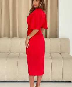 GIRL IN MIND SHELLY RED MIDI DRESS