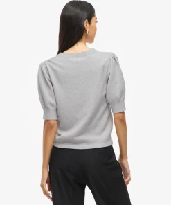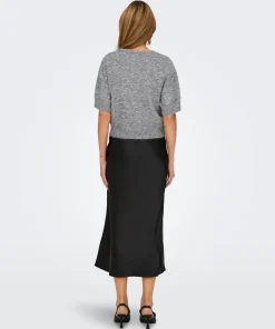 VILA RIL SHORT SLEEVE KNIT TOP IN LIGHT GREY MELANGE