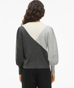 VILA KERRY KNIT TOP IN DARK GREY / LIGHT GREY / WHITE
