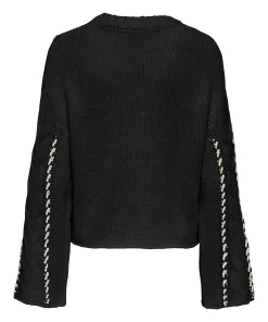 ONLY TESSA CABLE STITCH PULLOVER IN BLACK / BIRCH COLOUR