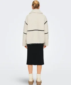 ONLY PARIS TEDDY JACKET CREAM WITH BLACK DETAIL