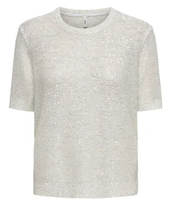 ONLY ABBY SEQUINS PULLOVER KNIT IN WHITE / SILVER
