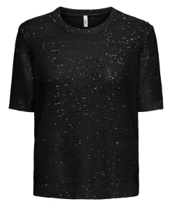 ONLY ABBY SEQUINS PULLOVER KNIT IN BLACK / SILVER