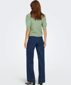 JDY RUE 2/4 SLEEVE PEARL DETAIL PULLOVER IN HEDGE GREEN
