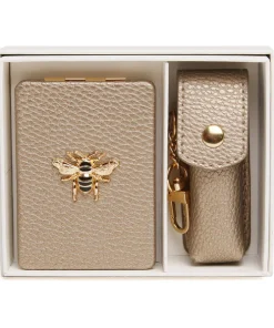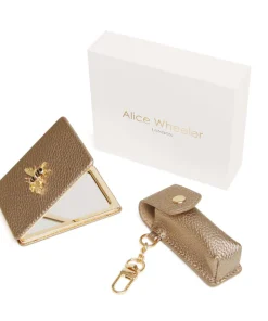 ALICE WHEELER COMPACT MIRROR AND LIPSTICK HOLDER SET IN BRONZE