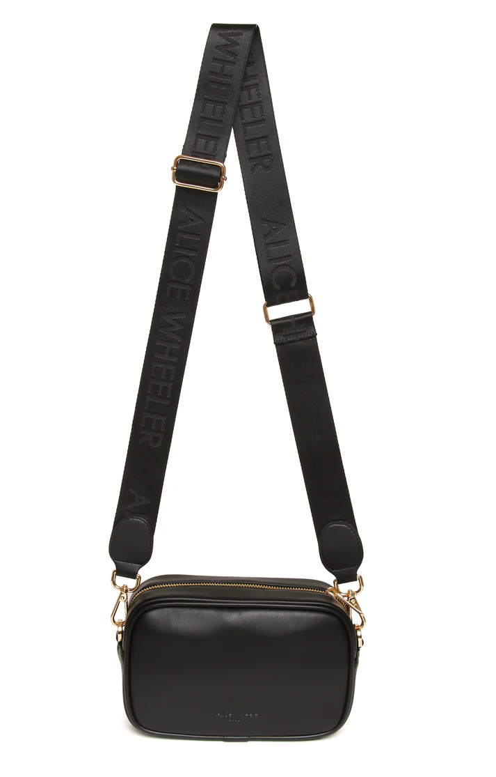 It comes with the new Alice Wheeler Logo strap that can be adjusted to your preferred length and style. You can wear it crossbody or over the shoulder or switch it up with other patterns and classic straps available on our website.