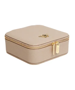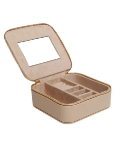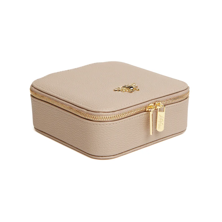 Jewellery box with Double zip allow lid with mirror insert to fully open, centre compartment holds rings, earrings and small items, whilst two side compartments hold larger items. Faux suede lined interior for that extra touch of luxury. Link the colours to our overnight / weekend bags and travel in style.