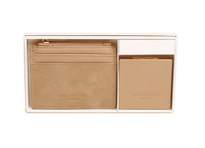 ALICE WHEELER VERONA COIN PURSE AND COMPACT MIRROR SET SAND