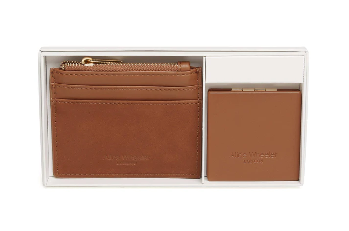 ALICE WHEELER VERONA COIN PURSE AND COMPACT MIRROR SET TAN