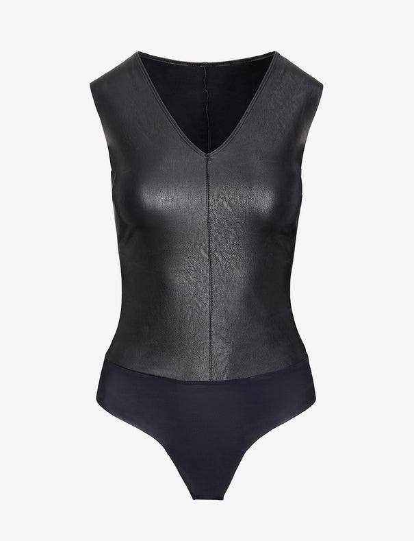 COMMANDO FAUX LEATHER BODYSUIT BLACK