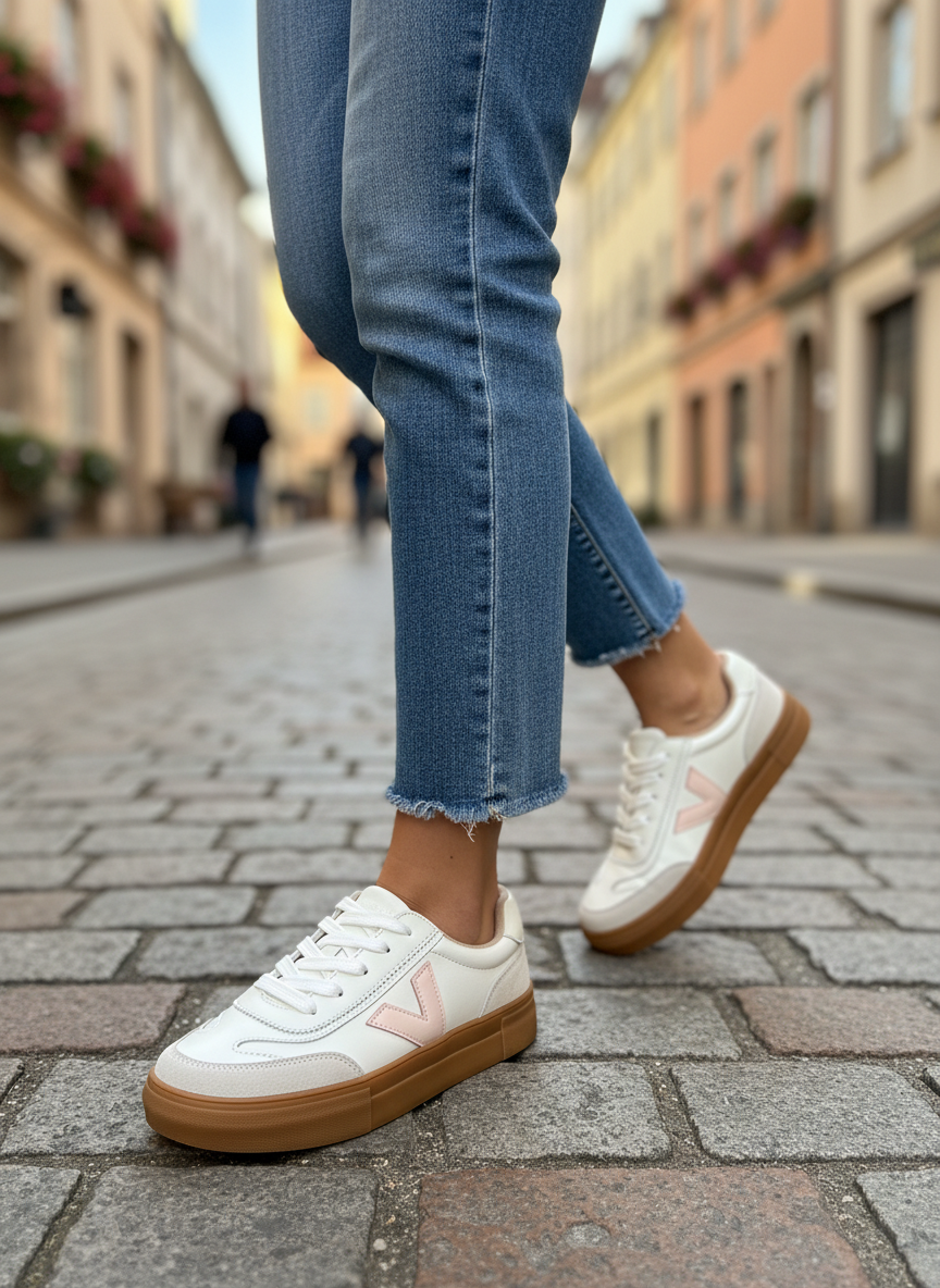 Style: The Eighty trainers feature a retro-inspired, chunky design with a platform sole that provides a subtle lift without compromising comfort. The “Chalky Blush” colourway includes pink/blush tones with contrasting details or white overlays.