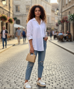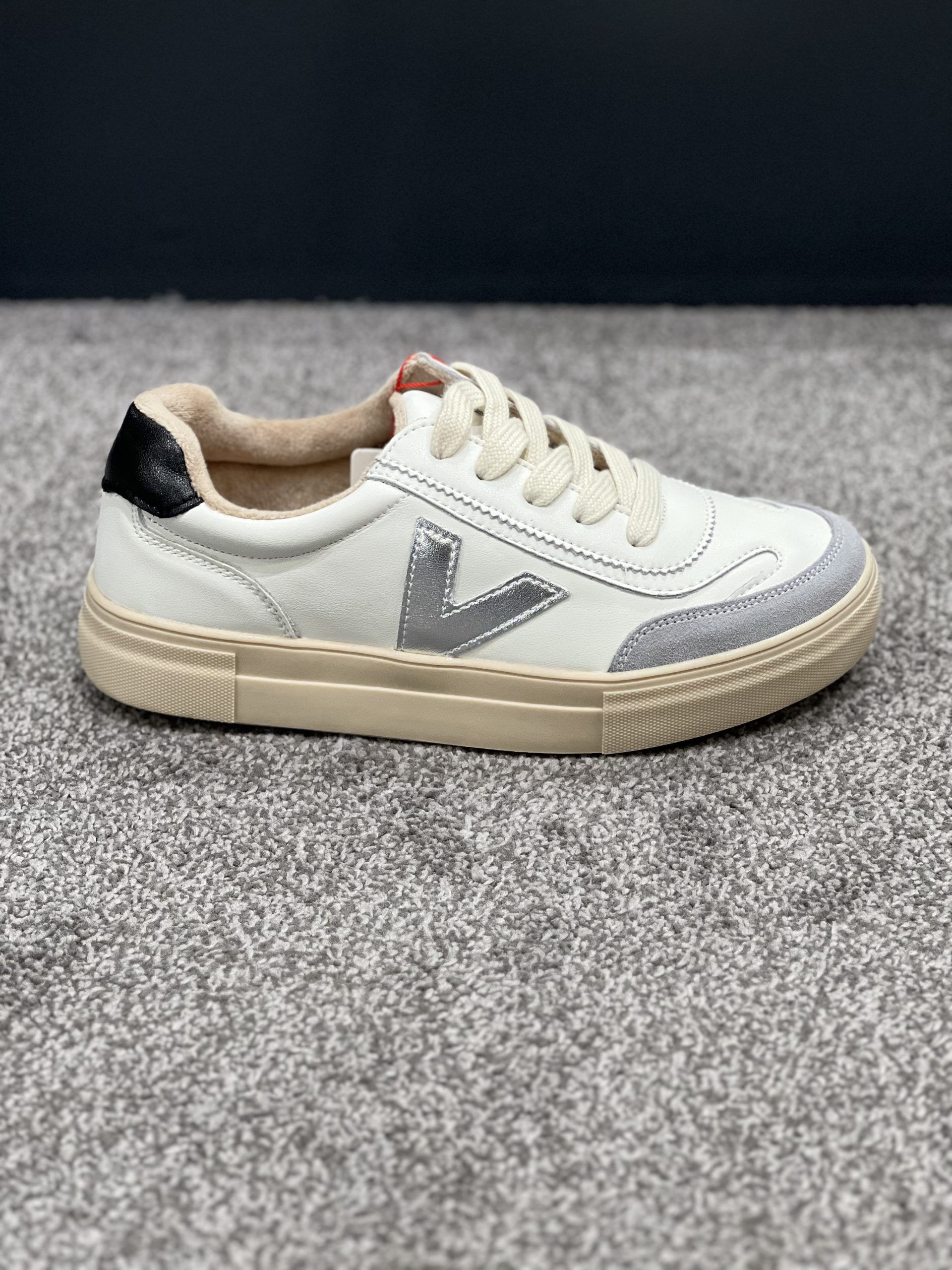 • Design: These Drilleys trainers feature a chunky, mid-platform sole (approx. 1.3-1.5 inches), lace-up closure, a rounded toe, and signature “V” branding on the side.