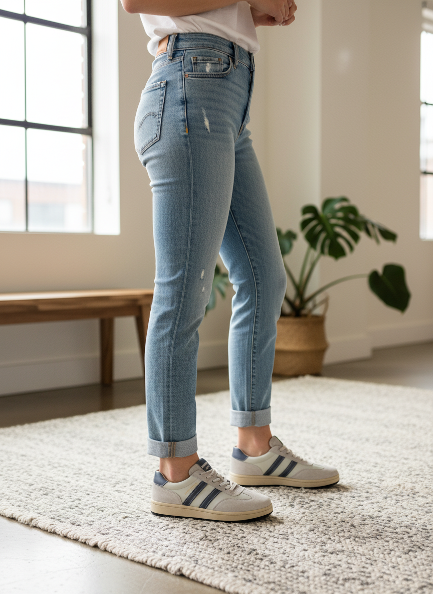 Experience the luxurious feel of suede with the added style of stripe details on the Drilleys Forty four trainers in Periwinkle . Fasten them effortlessly with the included laces and enjoy the cozy warmth of the fleece interior.