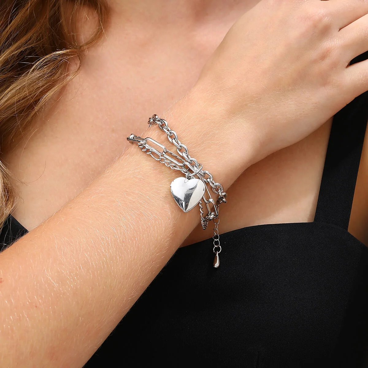 D&X CHUNKY SILVER HEART BRACELET DB2150R