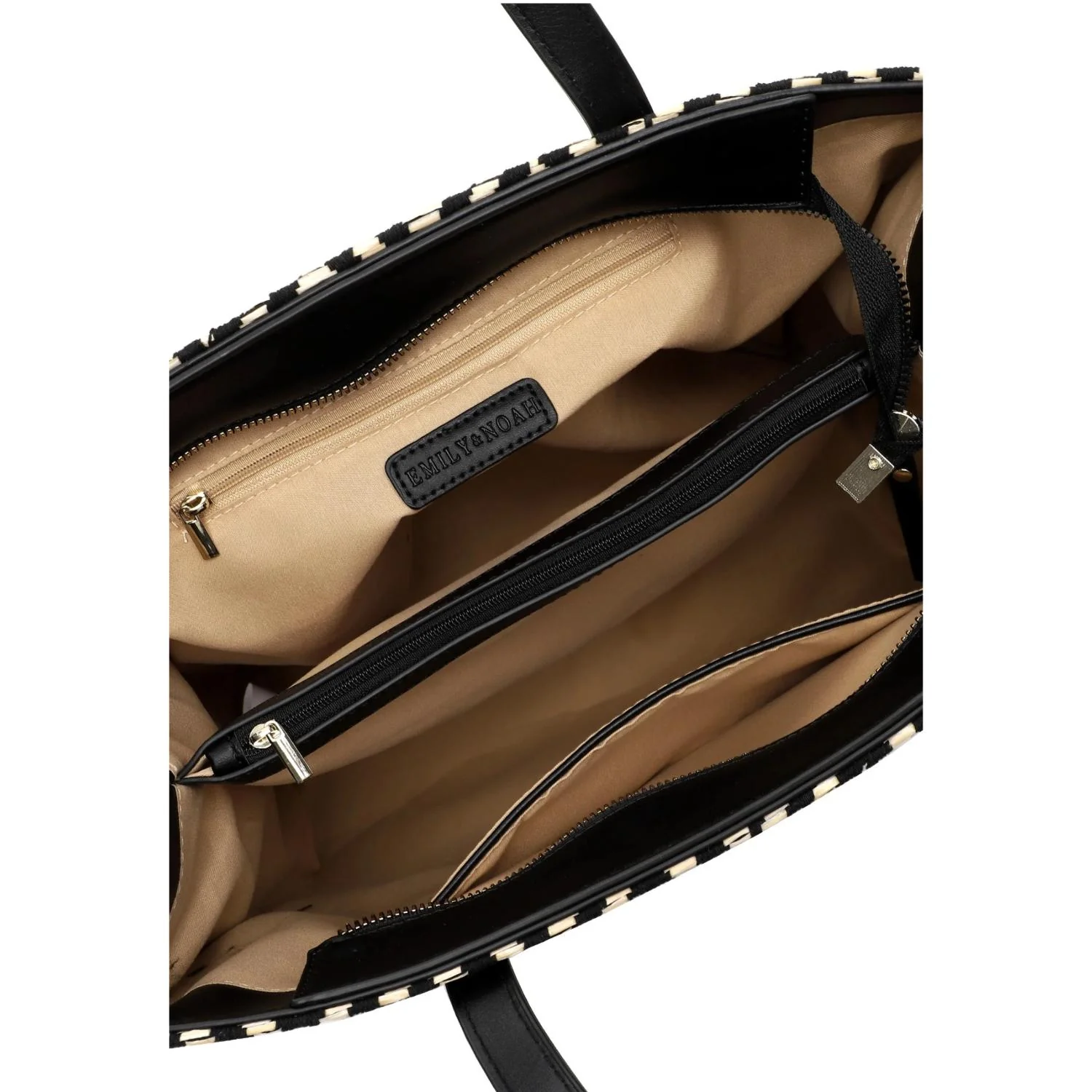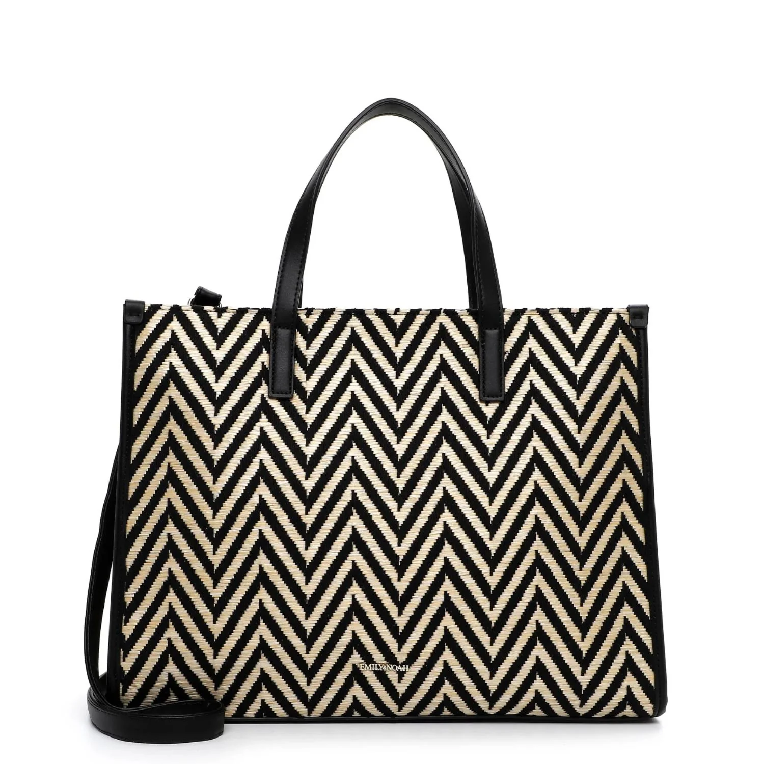 Fantastic selection of beautiful bags and accessories – Emily & Noah. A handbag is like a good friend, it never lets you down and you can rely on it a hundred pro. Emily&Noah Esperanza is the beautiful shopper in two-tone design with length-adjustable, removable shoulder strap that exudes true personality. It makes a casual statement for everyday wear. A shopper that is always reliable. The model, which can be closed with a zip, is made of fine synthetic. Thanks to the material, it is pleasant to the touch. With its raffia look and the two-tone design, the high-quality shopper is a real eye-catcher. With the attractive accessories from Emily & Noah, every personality gains its radiance, because the products are suitable for women who know what they want. The shopper has a clear main compartment and a zip centre wall, which is convenient for keeping your essentials protected. Thanks to the zip compartment on the back, you have additional storage space and easy access to all your essentials. The E&N Esperanza model is rather firm in feel, so that things that do not want to be bent are transported safely. The appliqué with single lettering, which becomes a playful eye-catcher. This new favourite companion is easily carried over the shoulder thanks to the length-adjustable, removable shoulder strap and two carrying handles. Sometimes you need more space in the shopper – for such cases, the model is ideal because everything you need as a woman on the go.