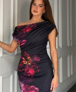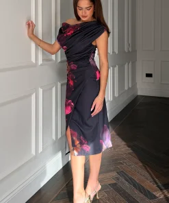Experience the beauty and elegance of our Ariana Asymmetric Midi Dress. Flattering wrap silhouette and midi length create a striking and feminine look. Made with high-quality materials, this dress offers both comfort and style. Perfect for any special occasion or a day out.
