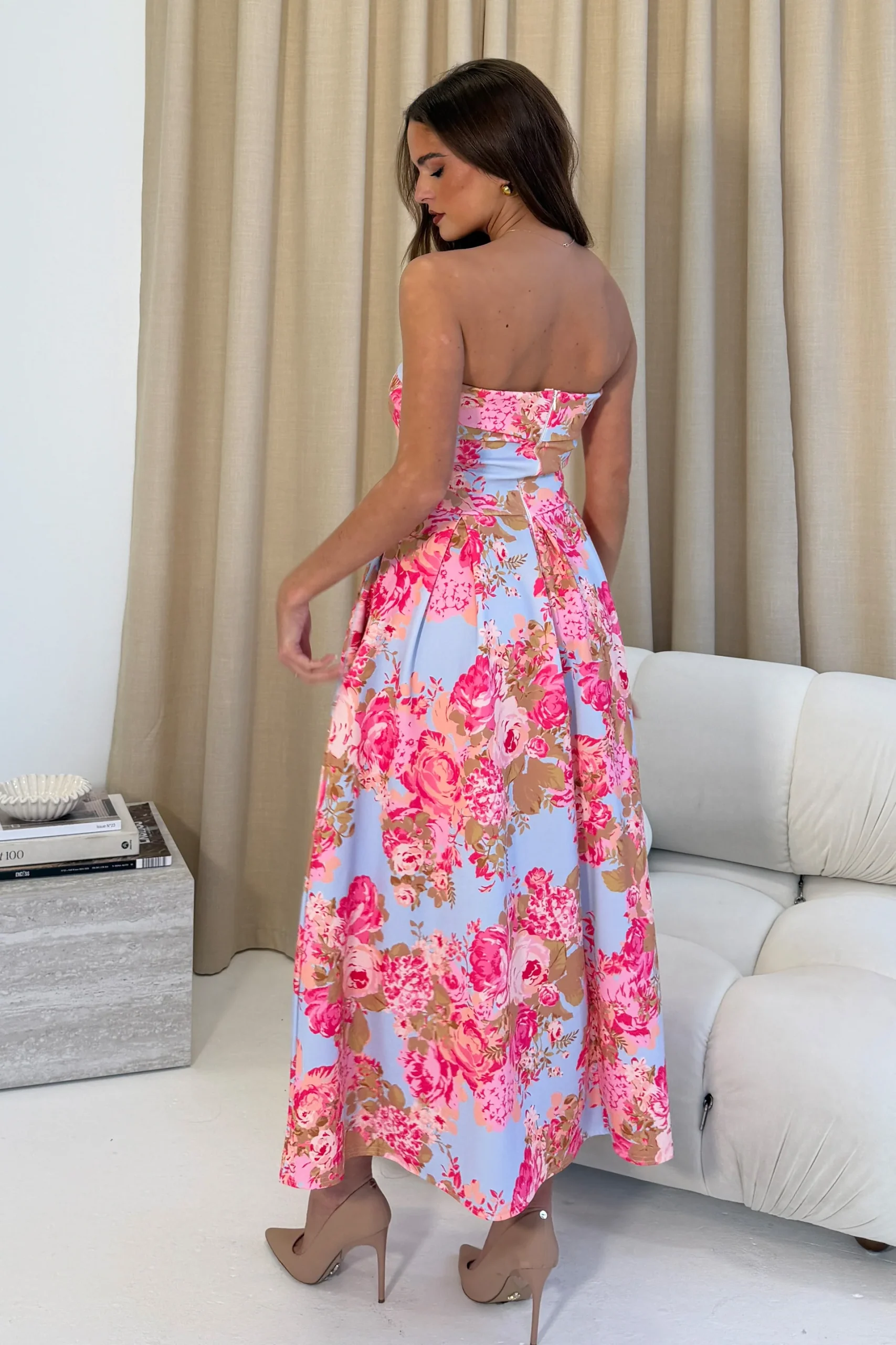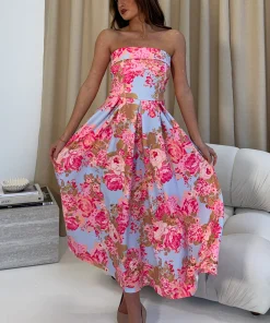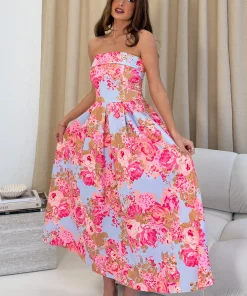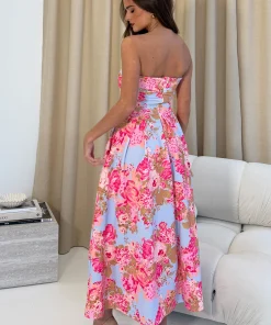 GIRL IN MIND DANNI STRAPLESS DRESS IN BLUE FLORAL
