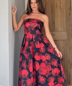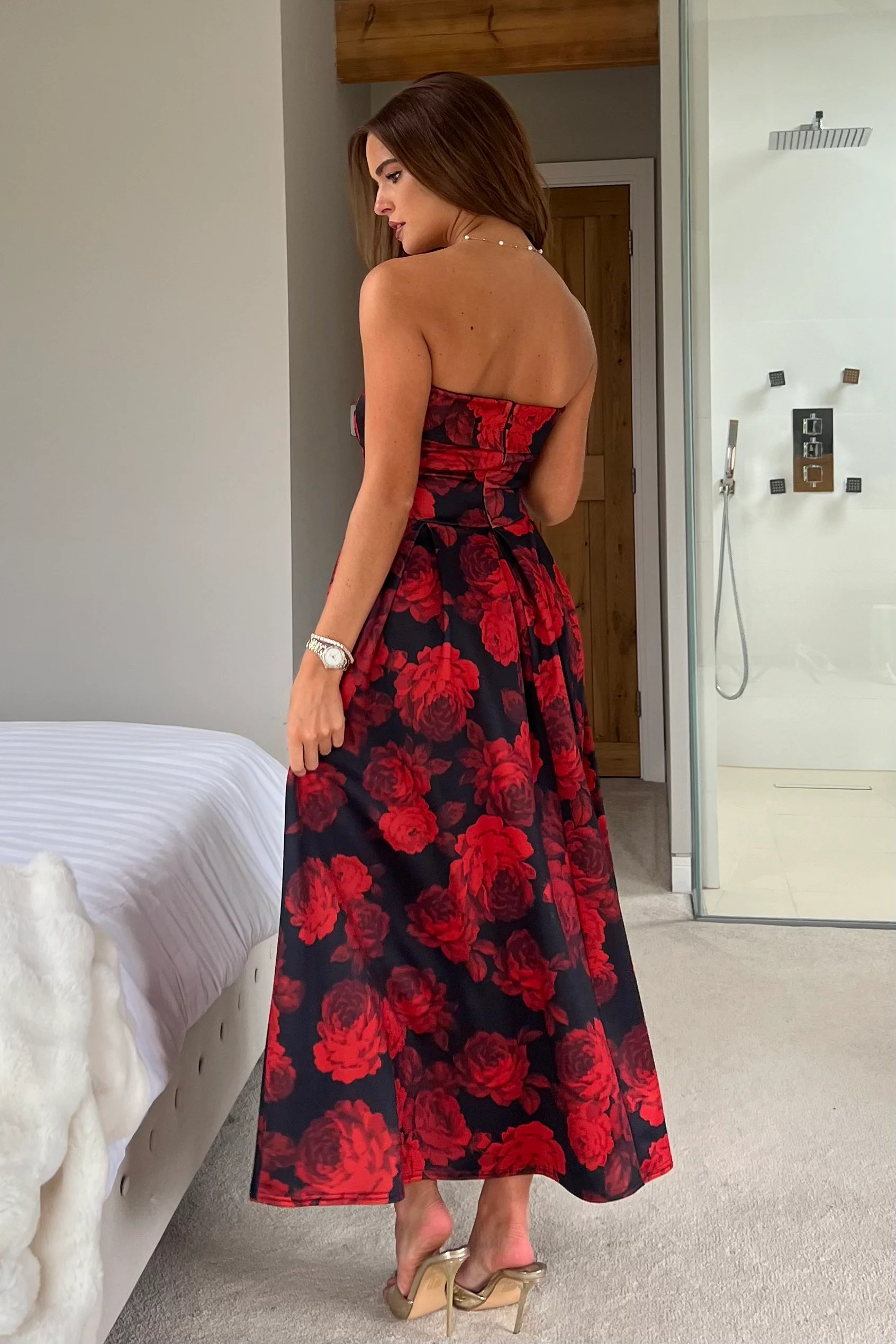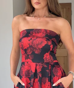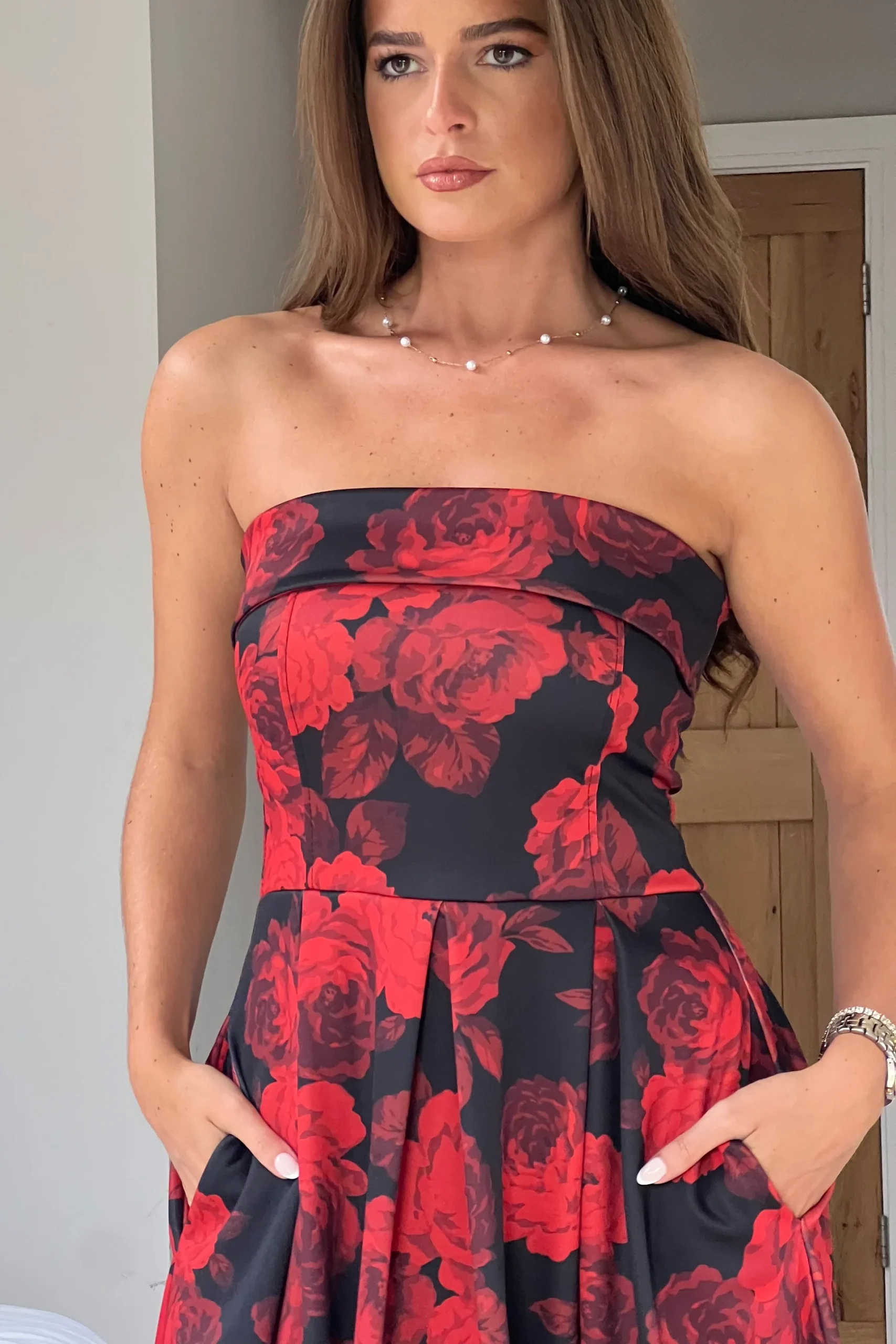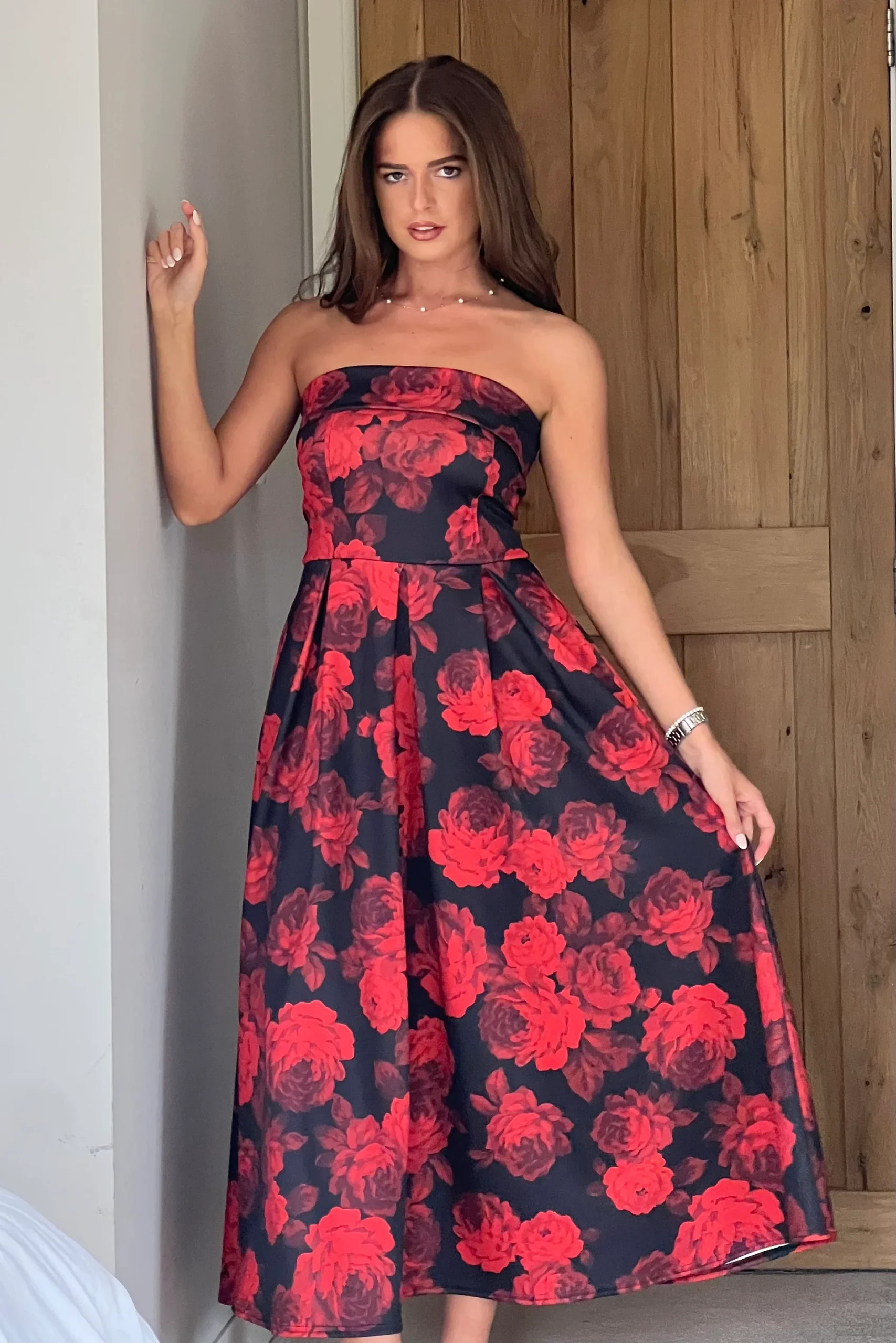 GIRL IN MIND DANNI STRAPLESS DRESS RED FLORAL PRINT