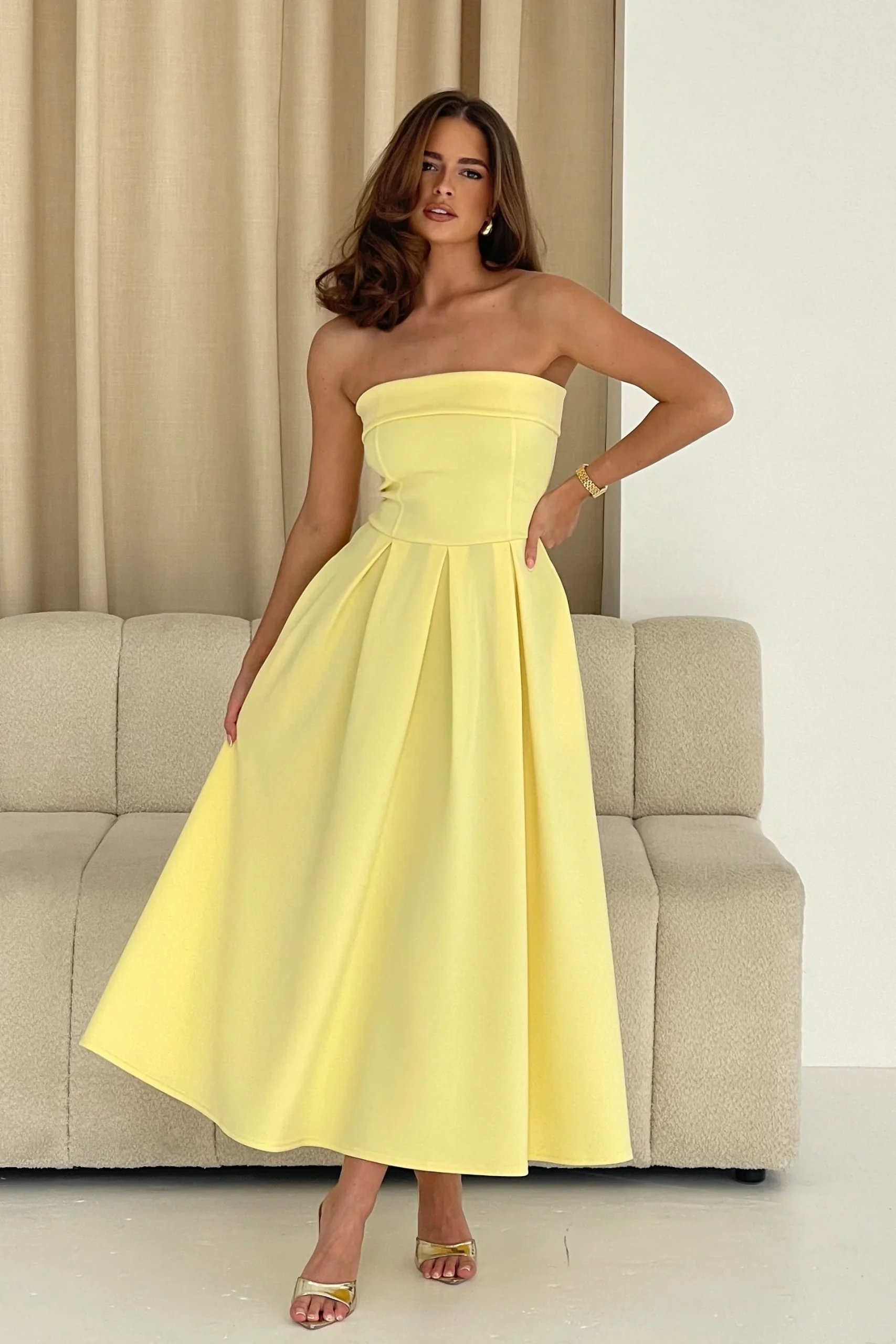 GIRL IN MIND DANNI STRAPLESS DRESS IN YELLOW
