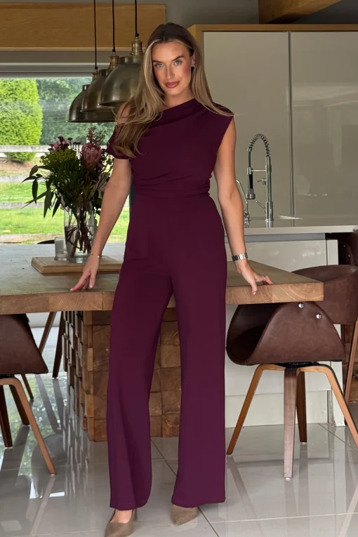 Experience modern elegance with the Girl in mind Donna Asymmetric Neckline Jumpsuit – a classic, timeless piece crafted from the highest quality materials for a luxurious feel. Its unique asymmetric neckline provides visual interest, while the sleek Wide leg trouser flatters the figure and elongates your legs, creating an exquisite look that will never go out of style.