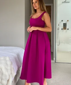 You name the occasion, we have the perfect dress. Crafted in a premium stretch fabric, Erica effortlessly compliments every body. Beautifully flowing with a cinched in waist, this midi dress boasts a pleated skirt that creates an elegant sense of movement. For a timeless race day look, try styling yours with some simple gold earrings and strappy stilettos.The model wears a UK 8 and is 5’6″.