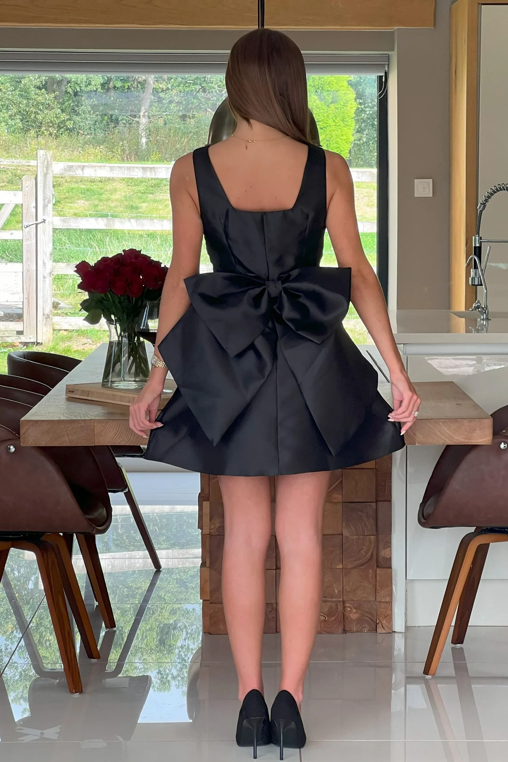 GIRL IN MIND FEYRE BOW DETAIL MINI DRESS IN BLACK COLOUR