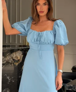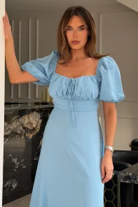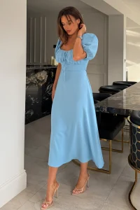 GIRL IN MIND JEMIMA SQUARE NECK MIDI DRESS IN BLUE