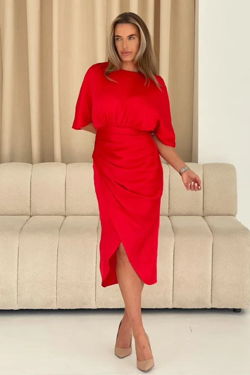 GIRL IN MIND SHELLY RED MIDI DRESS