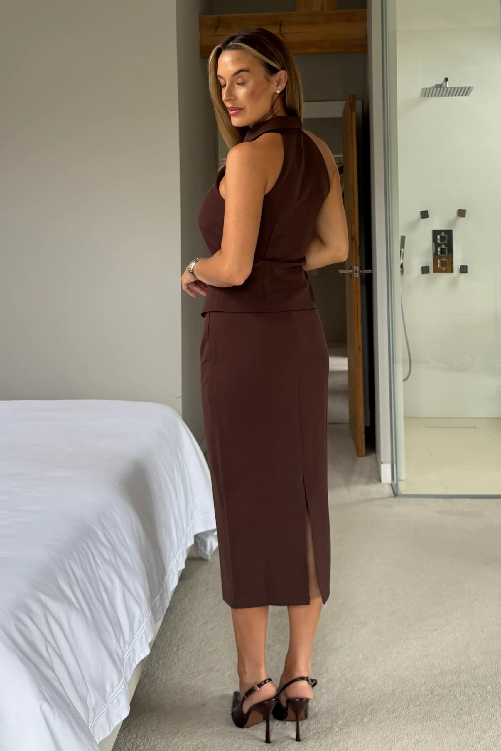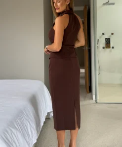 Tailored never goes out of style! Introducing our new Vicky Reversible Midi Skirt. Crafted for a premium fabric. Dense and with added stretch to flatter your curves. Wear it with a front or back split!