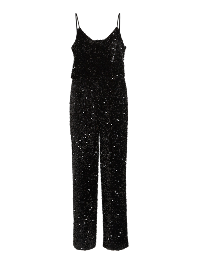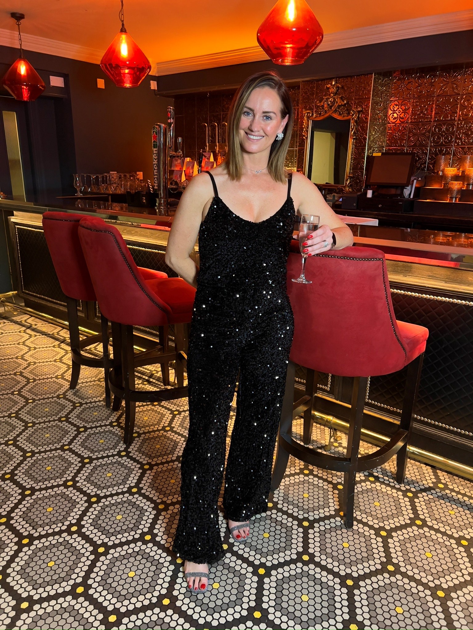 GLITZ FAITH V-NECK S/L SEQUIN JUMPSUIT