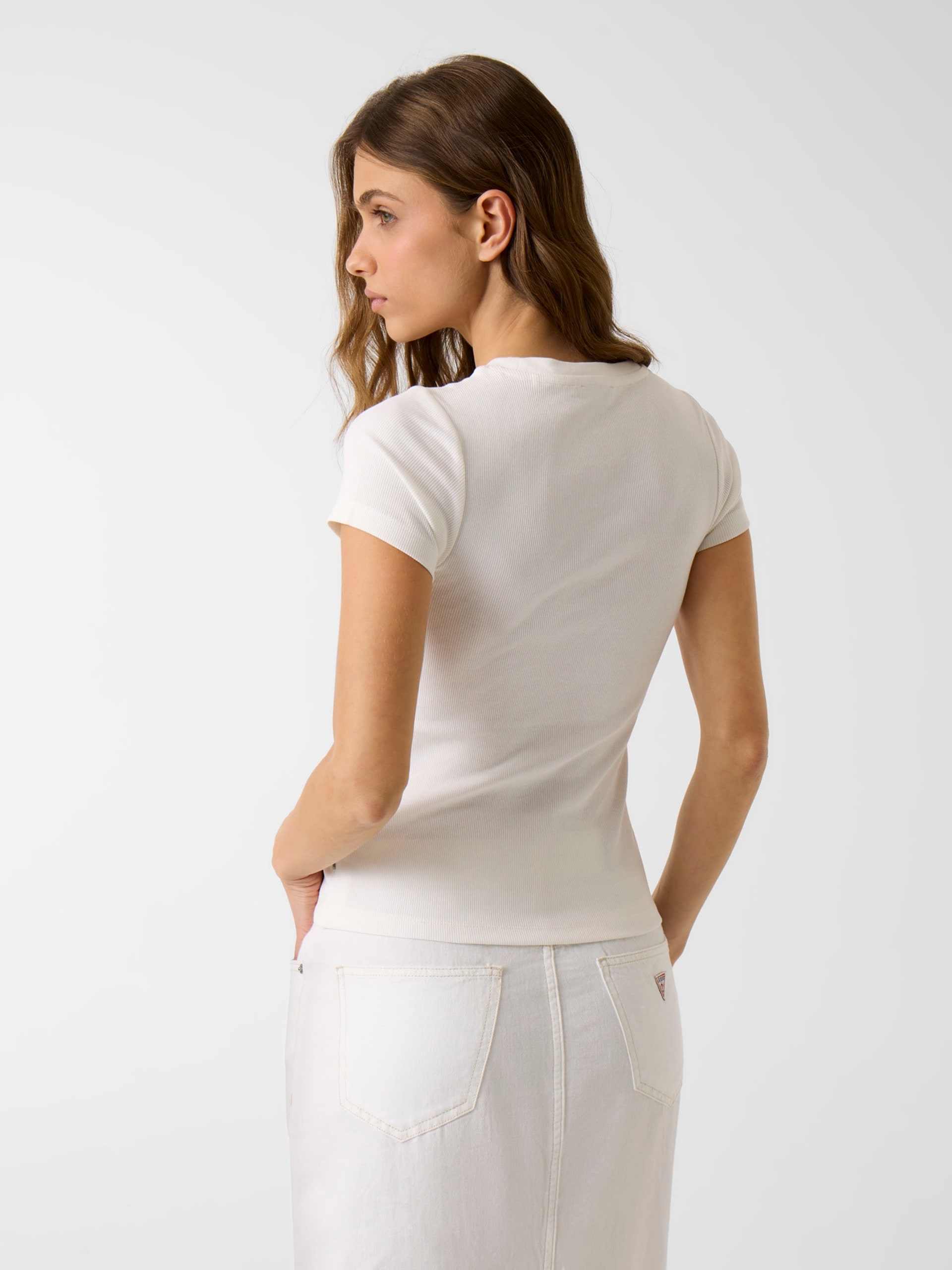 GUESS RIBBED EMBROIDERED TEE IN CREAM