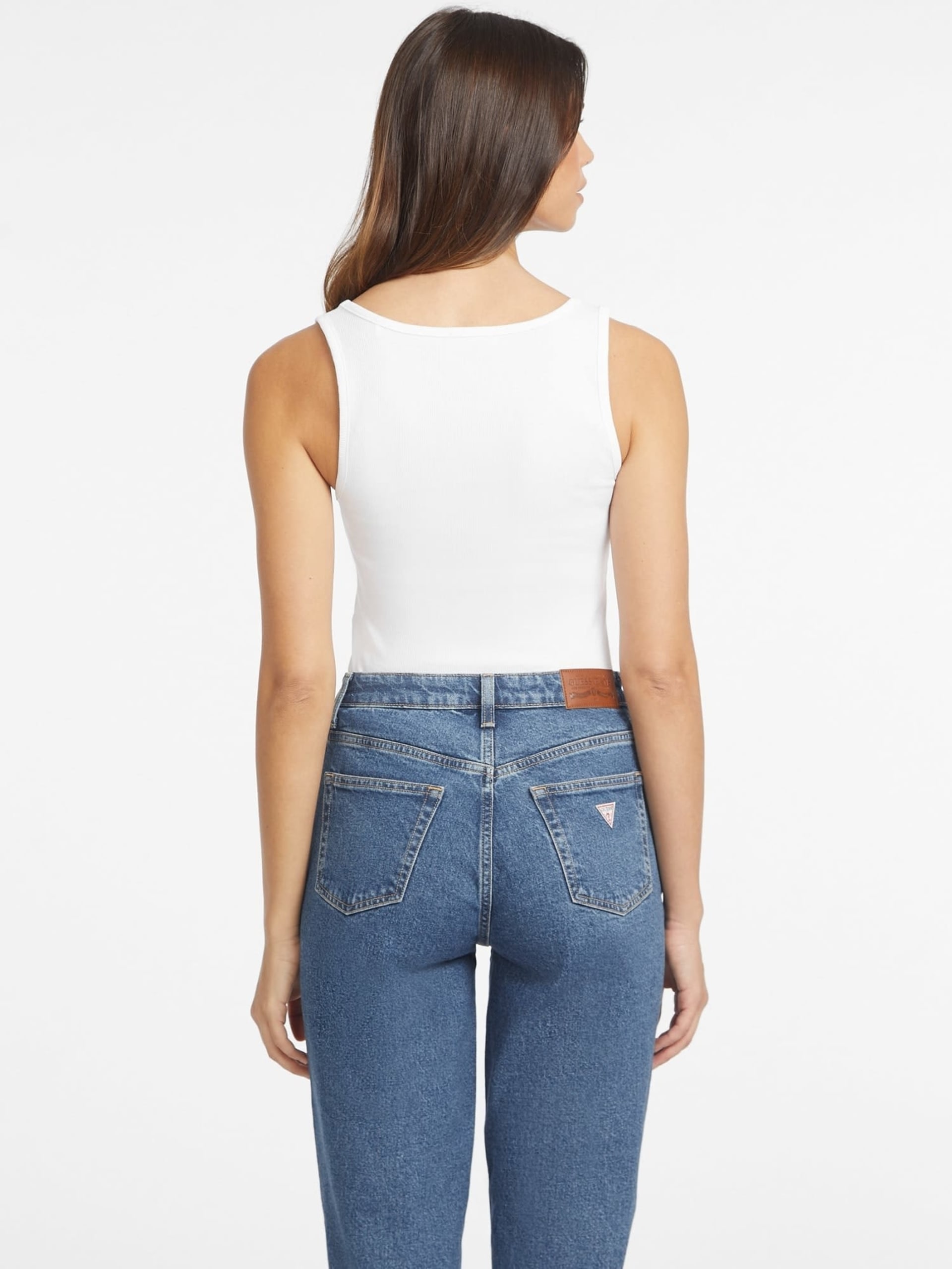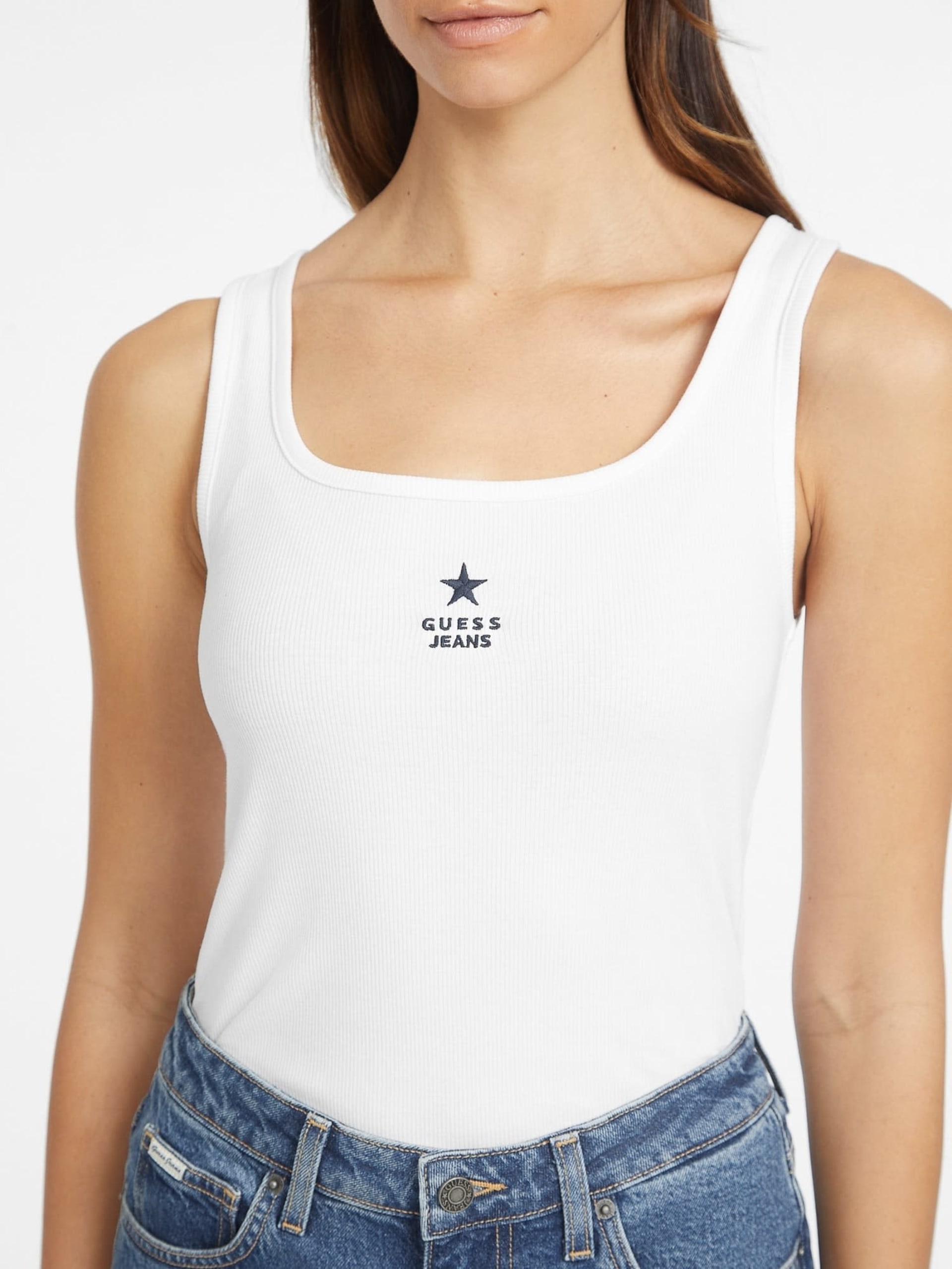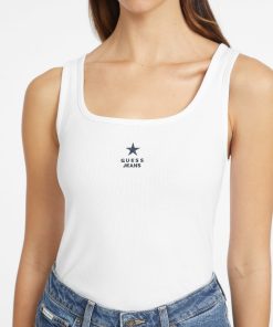 GUESS SLIM RIBBED TANK TOP IN WHITE