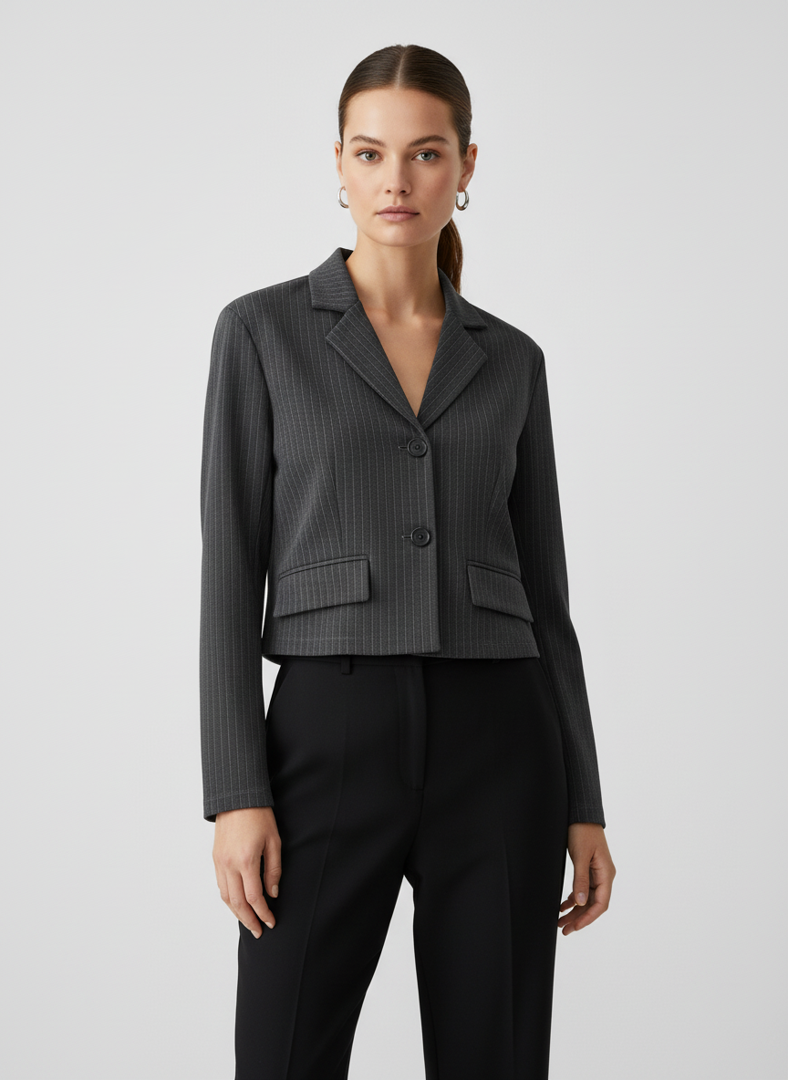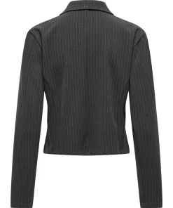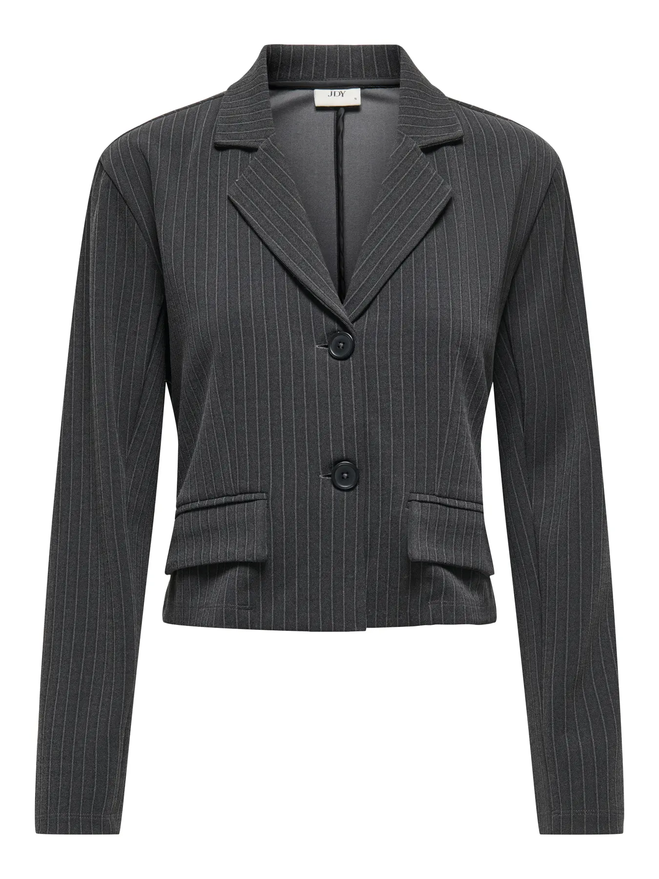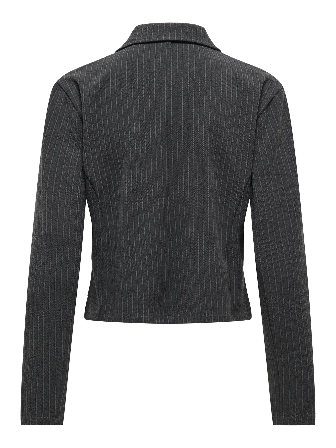 JDY DOLORES BLAZER IN DARK GREY MELANGE PINSTRIPE