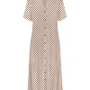 Upgrade your wardrobe with a stylish dress and create a stunning look that suits any occasion and season. – Product Type : Dress – Neck : V-Neck – Sleeve : Short sleeves – Sleeves : Volume sleeves – Length/Size : Midi length – Fit : Regular Fit