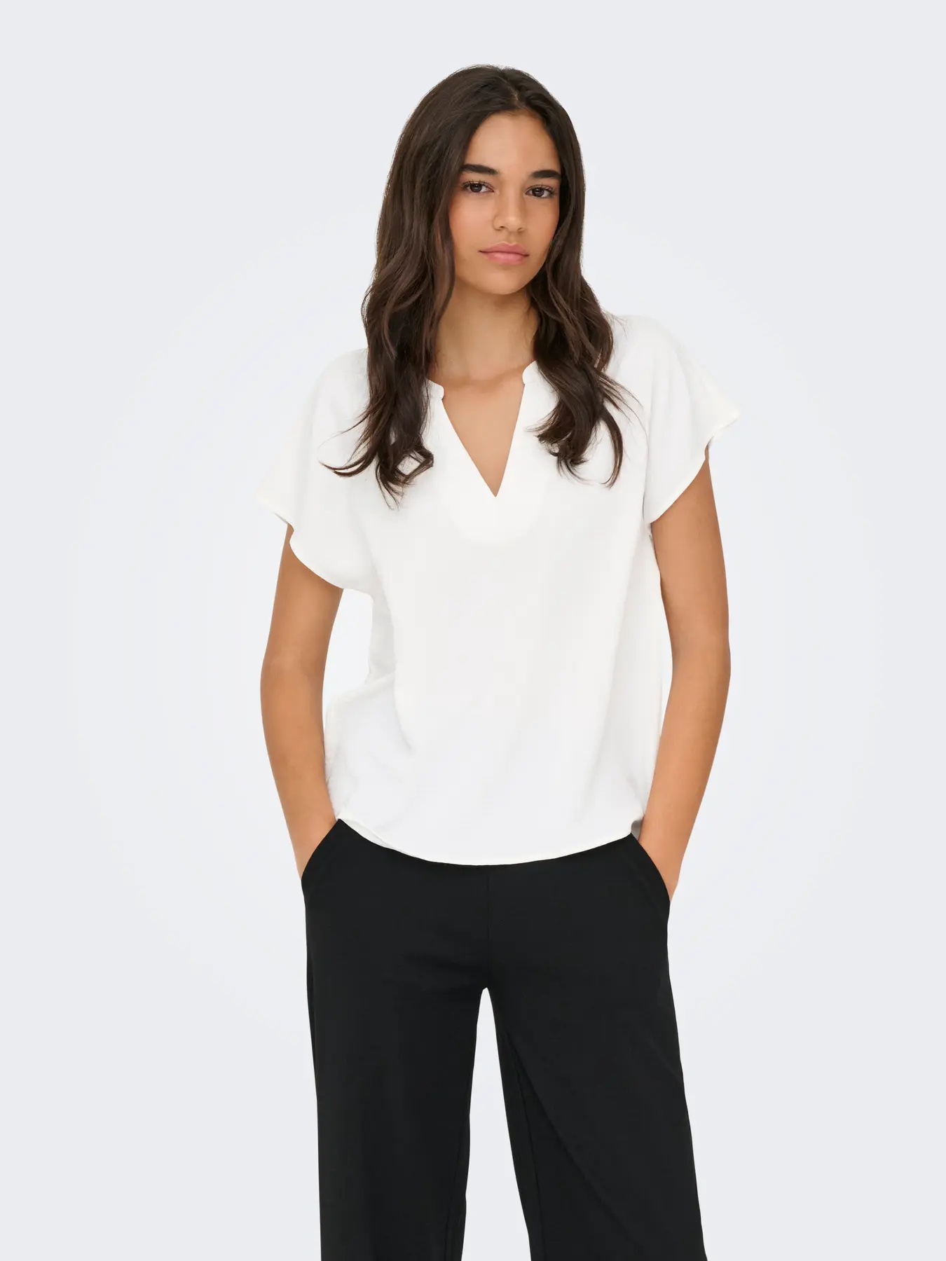JDY LION V-NECK TOP IN OFF WHITE