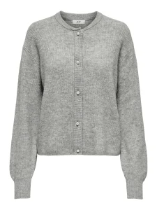 JDY LUMI PEARL BUTTON CARDIGAN IN MEDIUM GREY MELANGE