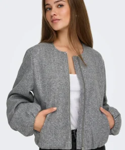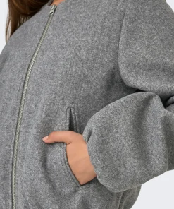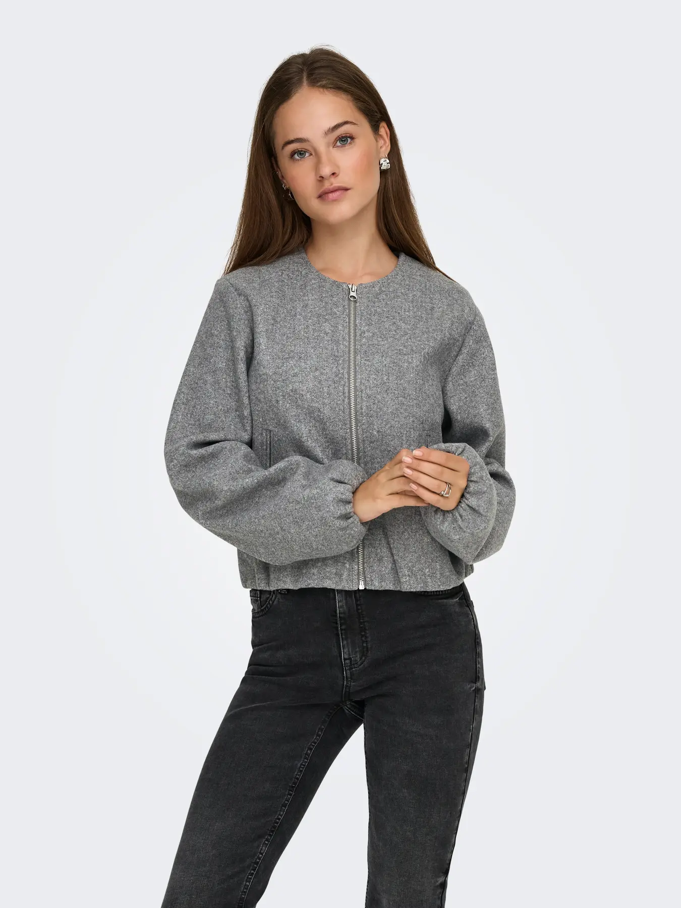 JDY OFIR BALLOON SLEEVE JACKET IN MEDIUM GREY MELANGE