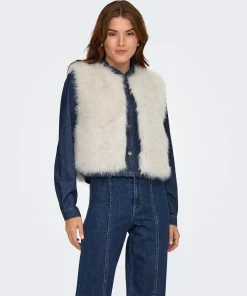 JDY ORA FAUX FUR WAISTCOAT IN BIRCH COLOUR