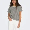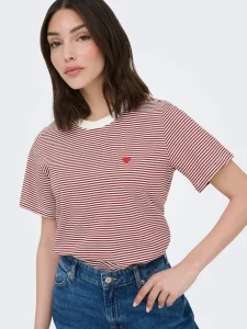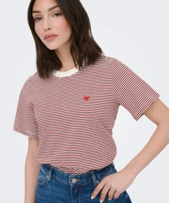 JDY PISA T-SHIRT IN CREAM / RHUBARB STRIPE