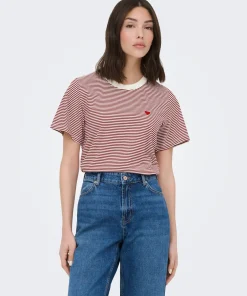 JDY PISA T-SHIRT IN CREAM / RHUBARB STRIPE