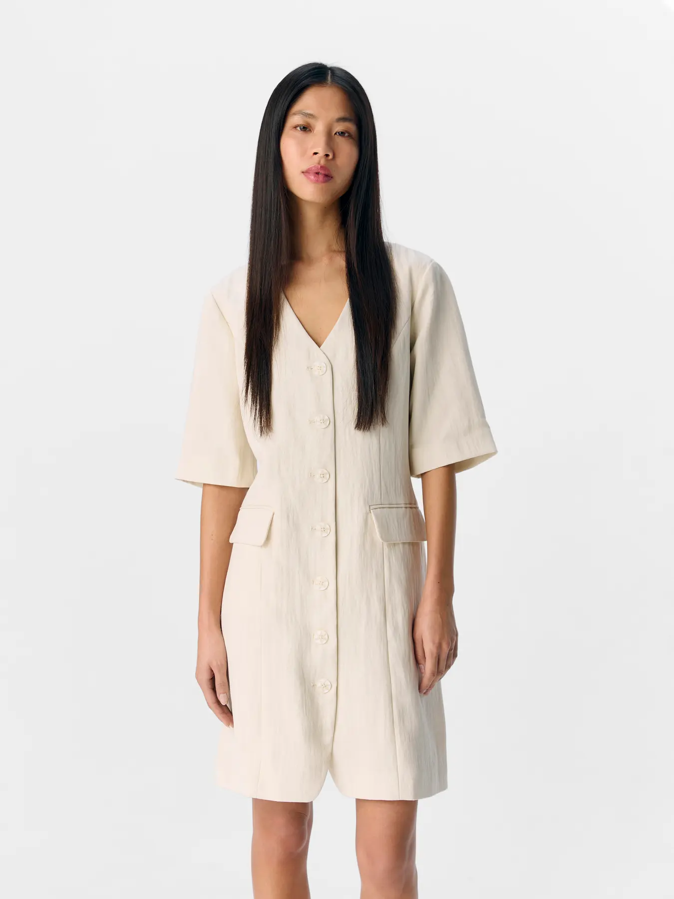 – Product Type : Blazer dress – Neck : Button-down collar – Closing : Button fastening – Pockets : Front pockets – Lining : Fully lined – Fit : Slim Fit