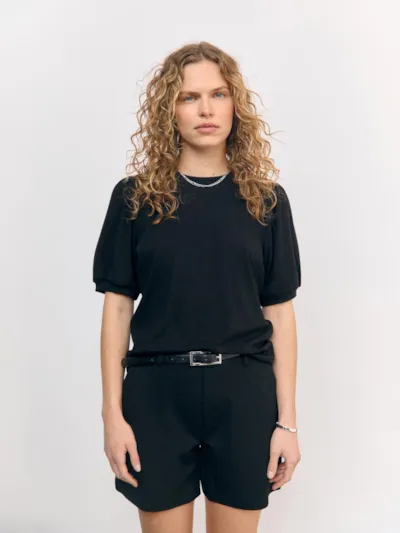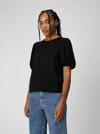 Your everyday saviour, the top can be worn with anything and everything. When it comes to rules – there are none. Jersey is a lightweight knitted fabric with stretch, which is synonymous with comfort and movement. – Product Type : T-shirt – Neck : Round Neck – Sleeve : Short sleeves – Sleeves : Balloon sleeves – Cuffs : Ribbed cuffs – Fit : Regular Fit