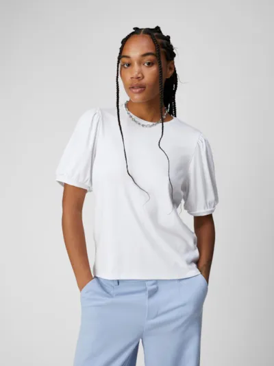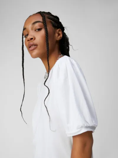 Your everyday saviour, this short sleeve top can be worn with anything and everything. When it comes to rules – there are none. Jersey is a lightweight knitted fabric with stretch, which is synonymous with comfort and movement. – Product Type : T-shirt – Neck : Round Neck – Sleeve : Short sleeves – Sleeves : Balloon sleeves – Cuffs : Ribbed cuffs – Fit : Regular Fit