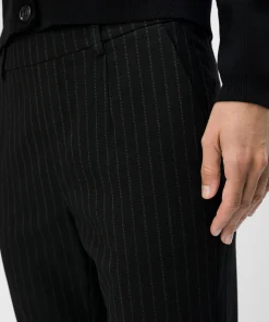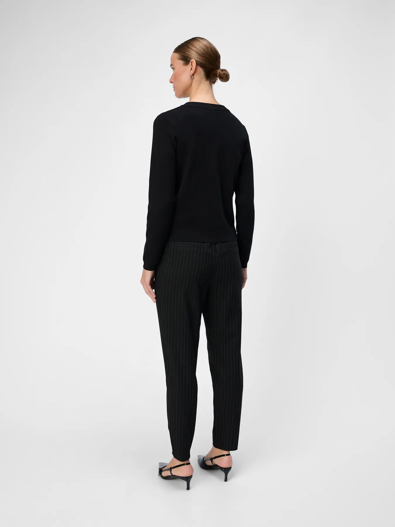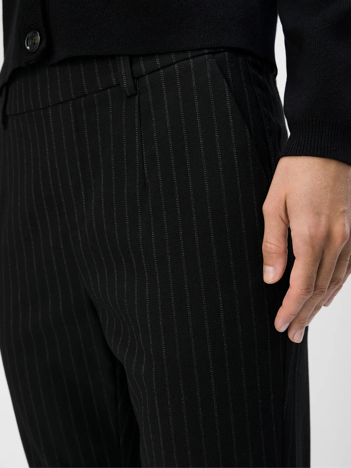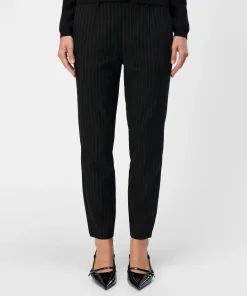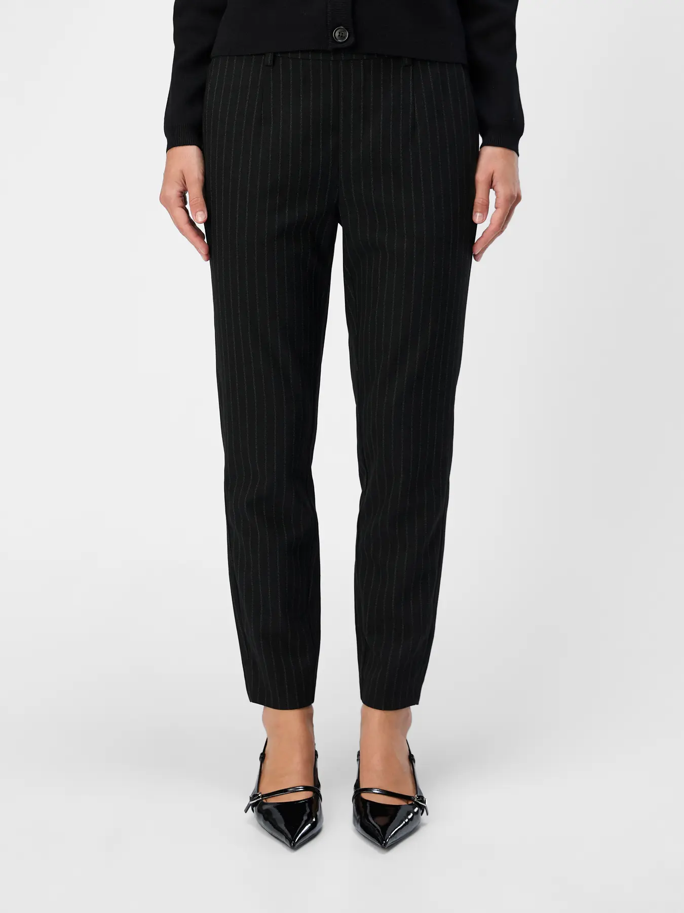 OBJECT LISA SLIM TROUSERS IN BLACK / GREY PINSTRIPE