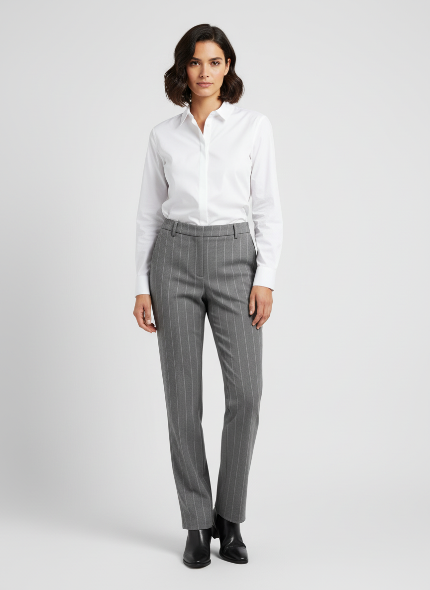 Pair your trousers with a blazer for head-to-toe elegance, or champion true Scandi style by styling with a T-shirt and sneaks for a more relaxed approach. Woven fabrics are durable, sturdy, and are normally associated with non-stretch garments – a great fabric for office wear and cute tops. – Product Type : Trousers – Pockets : Side pockets – Waist : Mid waist – Fit : Straight Fit