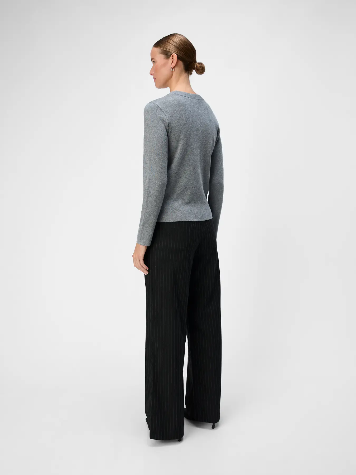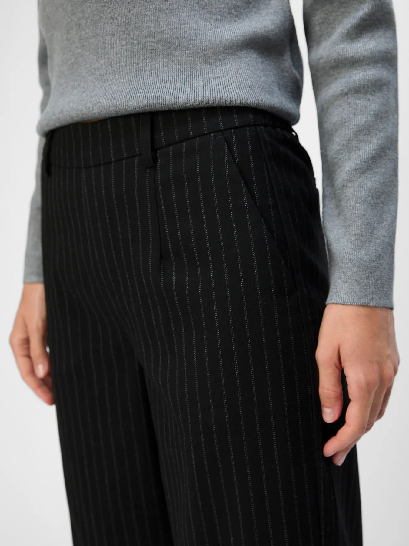 OBJECT LISA WIDE LEG TROUSERS IN BLACK PINSTRIPE