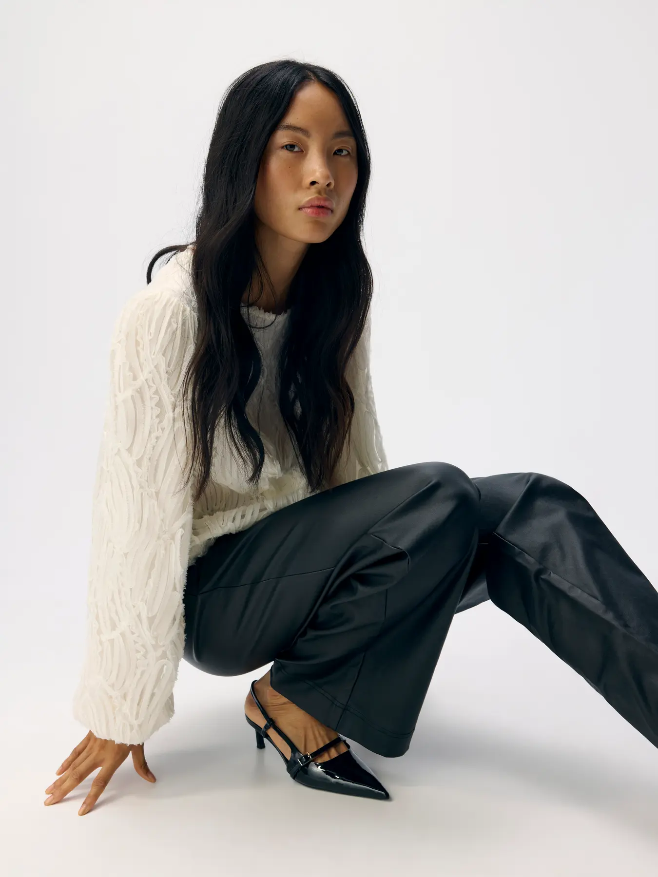 OBJECT MELBA LISA WIDE LEG TROUSERS IN BLACK LEATHER