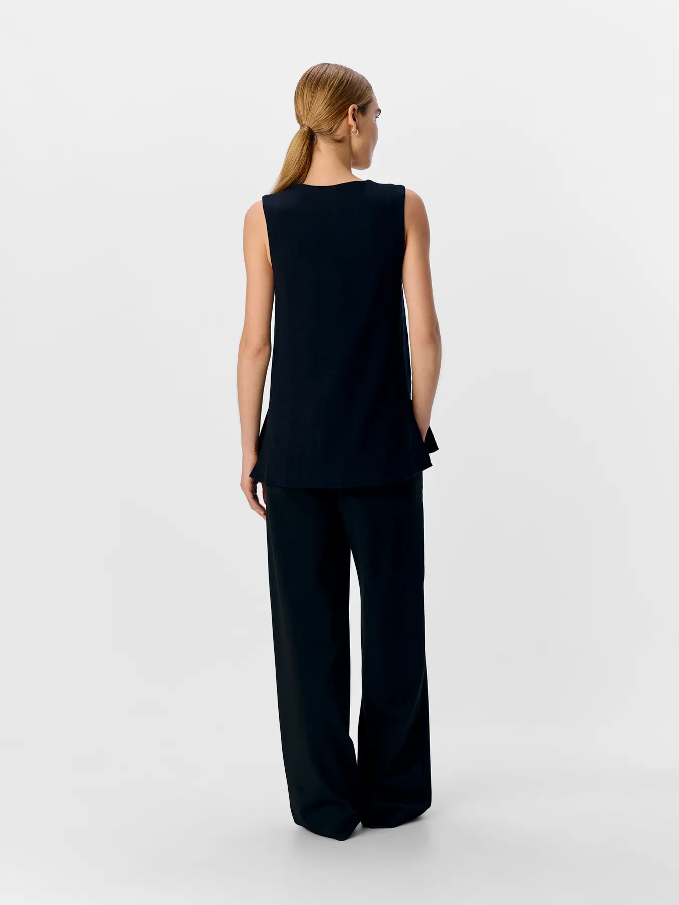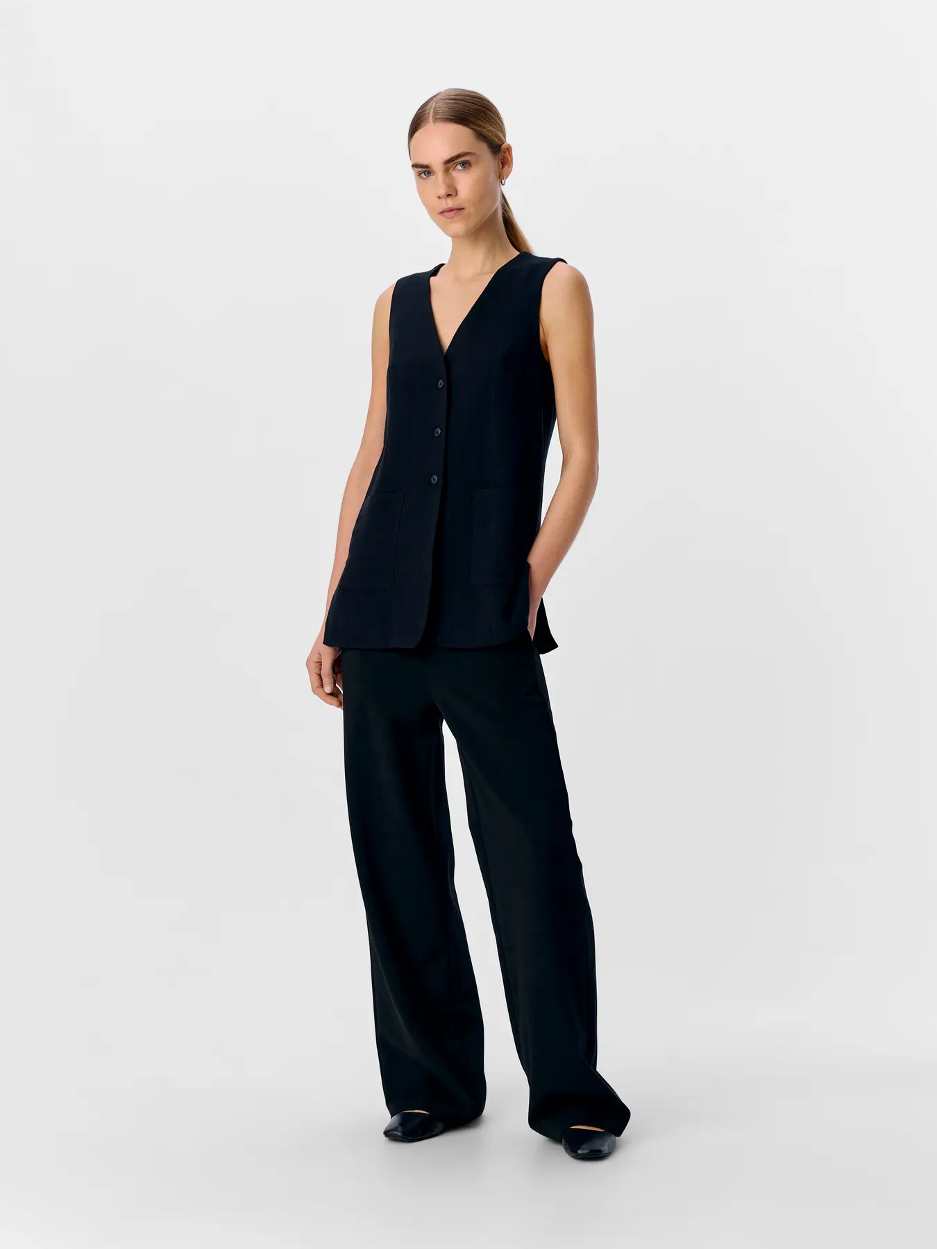 The Sanne black vest has three buttons at the front and a deep v-neck. The vest is designed with two pockets at the front and a small slit at the bottom on each side. The Objsanne vest is the perfect item in any wardrobe, which can be used for everyday use with a pair of jeans or styled up with a pair of heels and cool accessories!