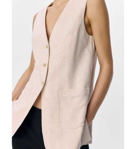 Sanne Long Vest in the color sandshell from Object is a longline vest with a classic look in a soft linen blend. This vest has three buttons at the front and a deep v-neck. The vest is designed with two pockets at the front and a small slit at the bottom on each side. The Objsanne vest is the perfect item in any wardrobe, which can be used for everyday use with a pair of jeans or styled up with a pair of heels and cool accessories!
